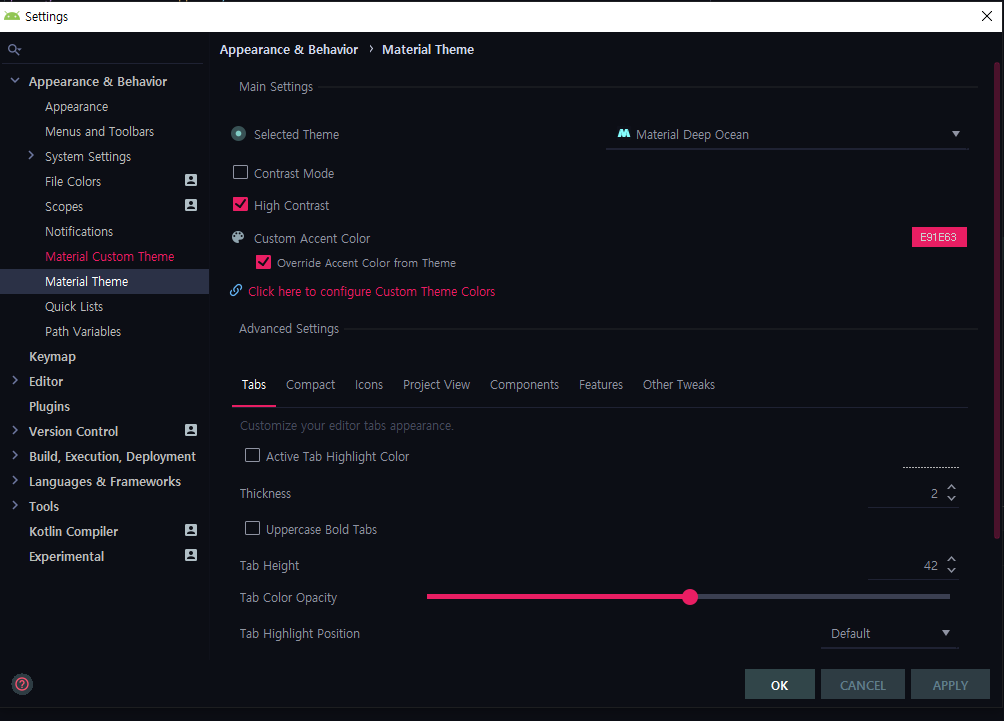 나같은 경우는 Material Deep Ocean을 적용했는데 어우 너무 신선한 컬러다