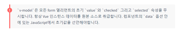 개념은 v-model에 데이터를 바인딩 해주고, 그 데이터에 초기값을 준다.